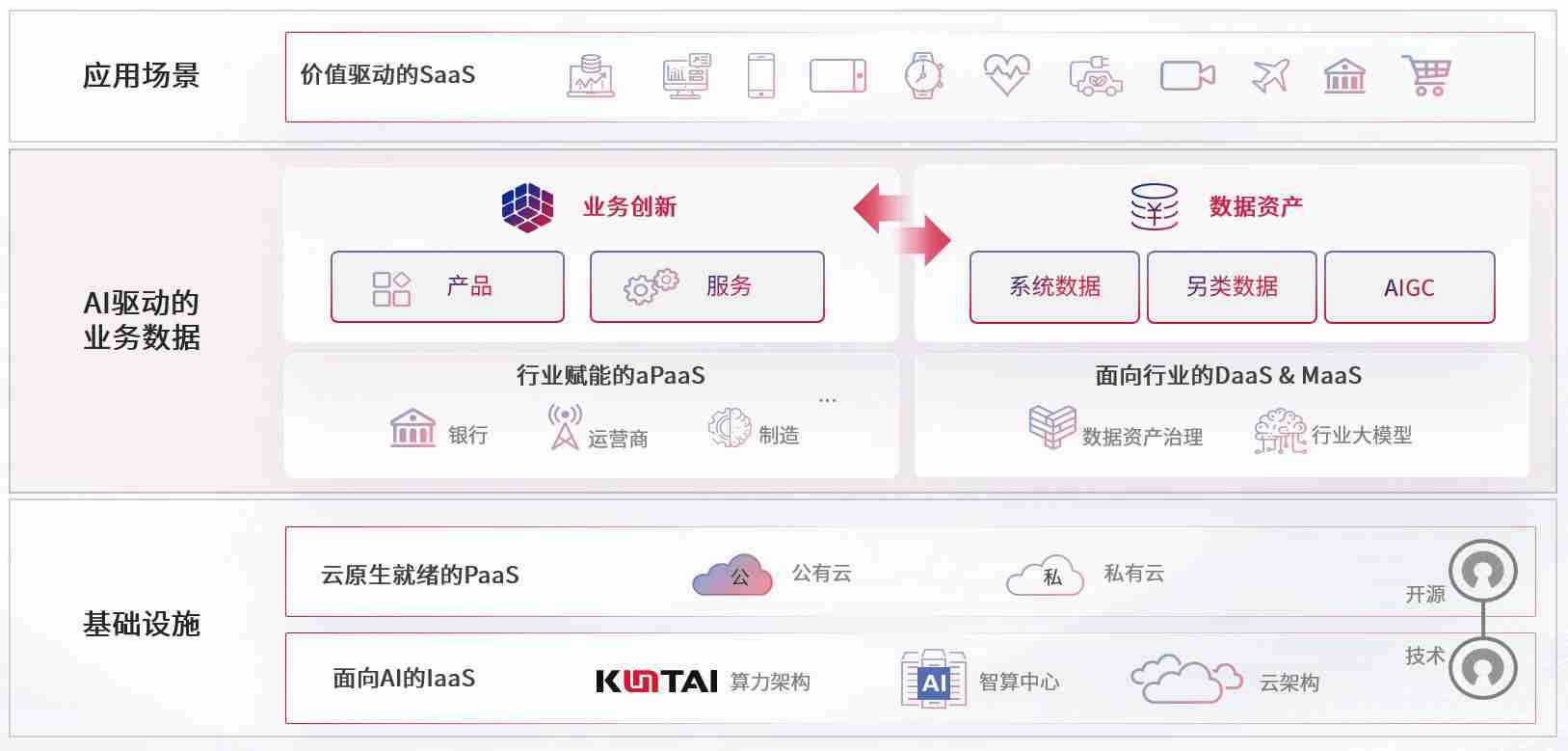 数字时代,,围绕企业数字化转型的关键要素,,,ABPAY钱包数码开创性的提出数云融合战略和技术体系框架,,,,着力在云原生、、数字原生、、、AI原生和信创产业上架构产品和服务能力,,为处在不同数字化转型阶段的快消零售、、、汽车、、、、金融、、、医疗、、、政企、、教育、、运营商等行业客户提供泛在的敏捷IT能力和融合的数据驱动能力,,,构建跨界融合创新的数字业务场景和新业务模式,,助力企业级客户建立面向未来的核心能力和竞争优势,,全面推动社会的数字化、、、智能化转型升级。。。